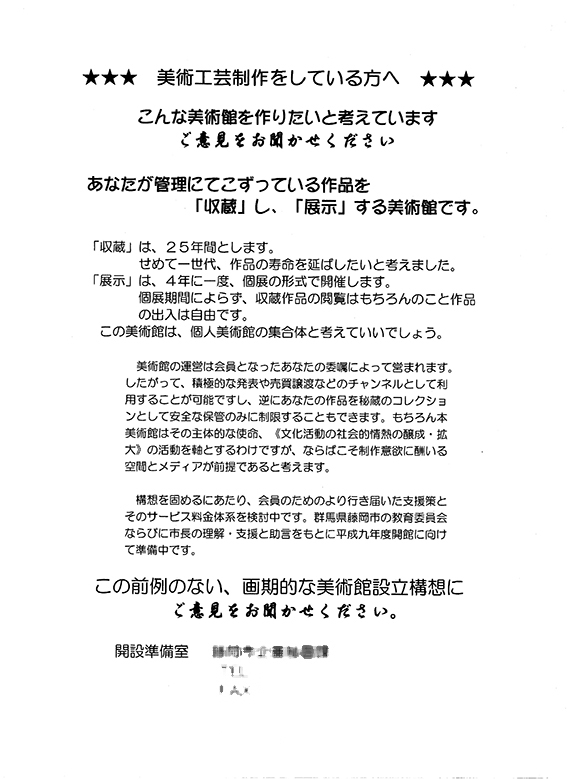 -- 美術工芸制作をしている方へ -- Vol.2 (1996年 2月 2日)